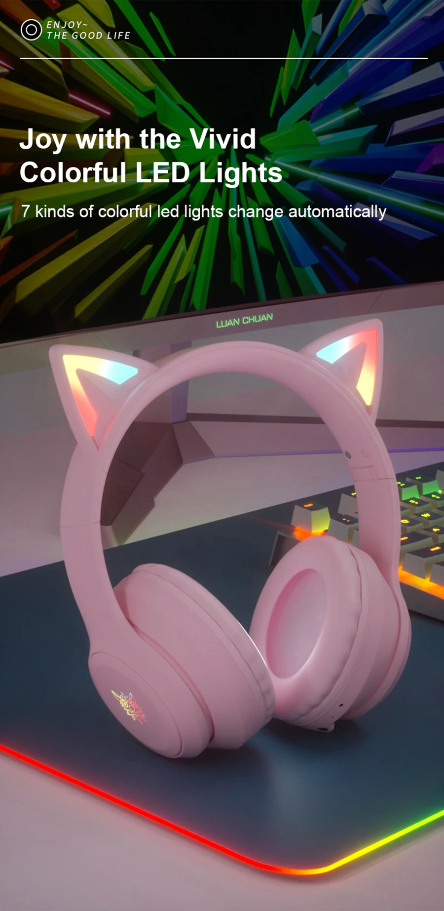 1. Using RGB Cute Cat Ear�� With a pink outlook and the cute cat ears, this headset forms your gaming set-up to a new level of kawaii, automatically to attract everyone's attention.