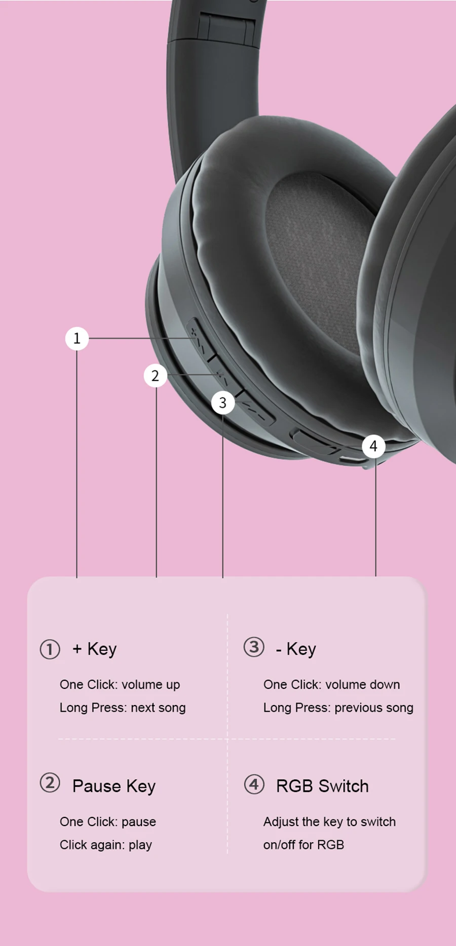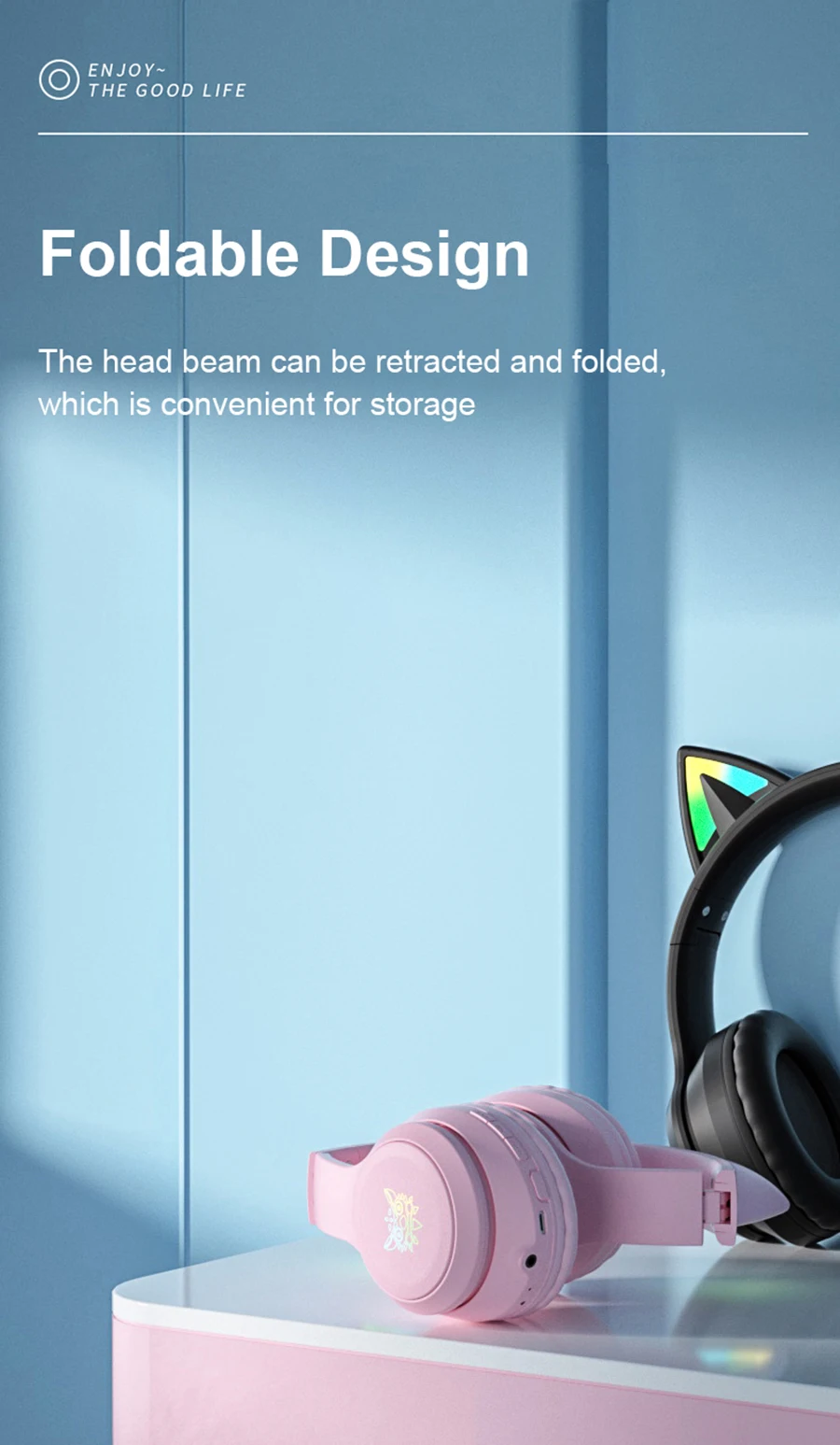 • RGB Cat Ear Design :The headset features a unique RGB cat ear design that adds a touch of fun and personality to your gaming experience.