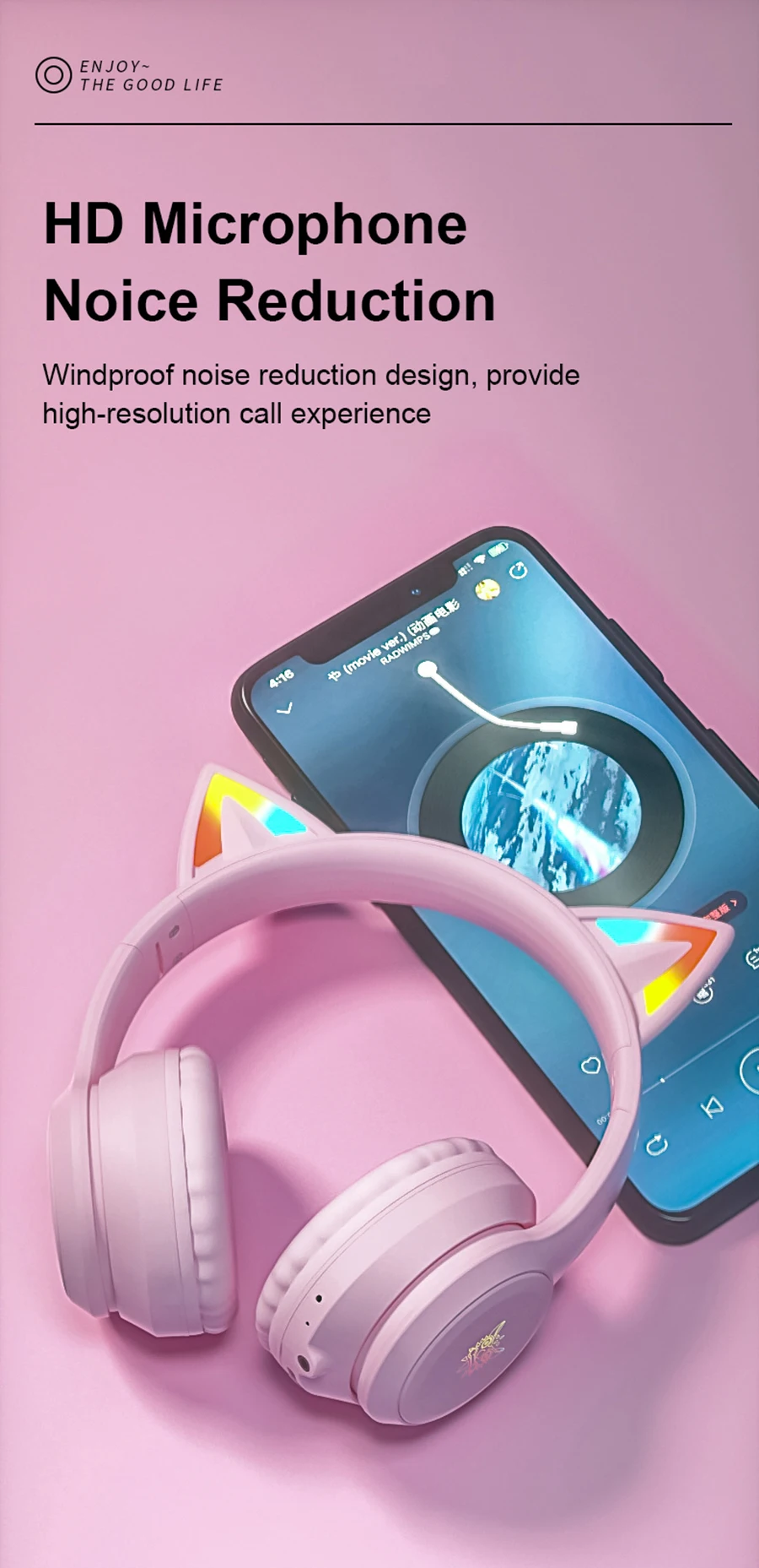 Bluetooth-Compatible 5.0, Wide Compatible, RGB Cat Ear